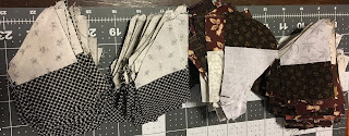 Well, I finally did SEW yesterday! I completed half the flying geese for Clue 5. Today I'll press them and finished up with Clue 5. Clue 6 is cut and ready to sew. Clue 7 is ready to sew. I'm so glad the cutting is over!!! I didn't have any Accuquilt dies that would work for this quilt - all cut by rotary cutter. Whew! If I'm going to keep making Bonnie Hunter mystery quilts, I think I might need to invest in a 2" strip die...