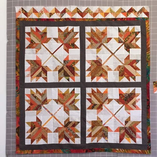 I finished the Appalachian Autumn quilt top! Okay, it's not my best work, but I do love it anyway! It's now in the hands of a long arm quilter.